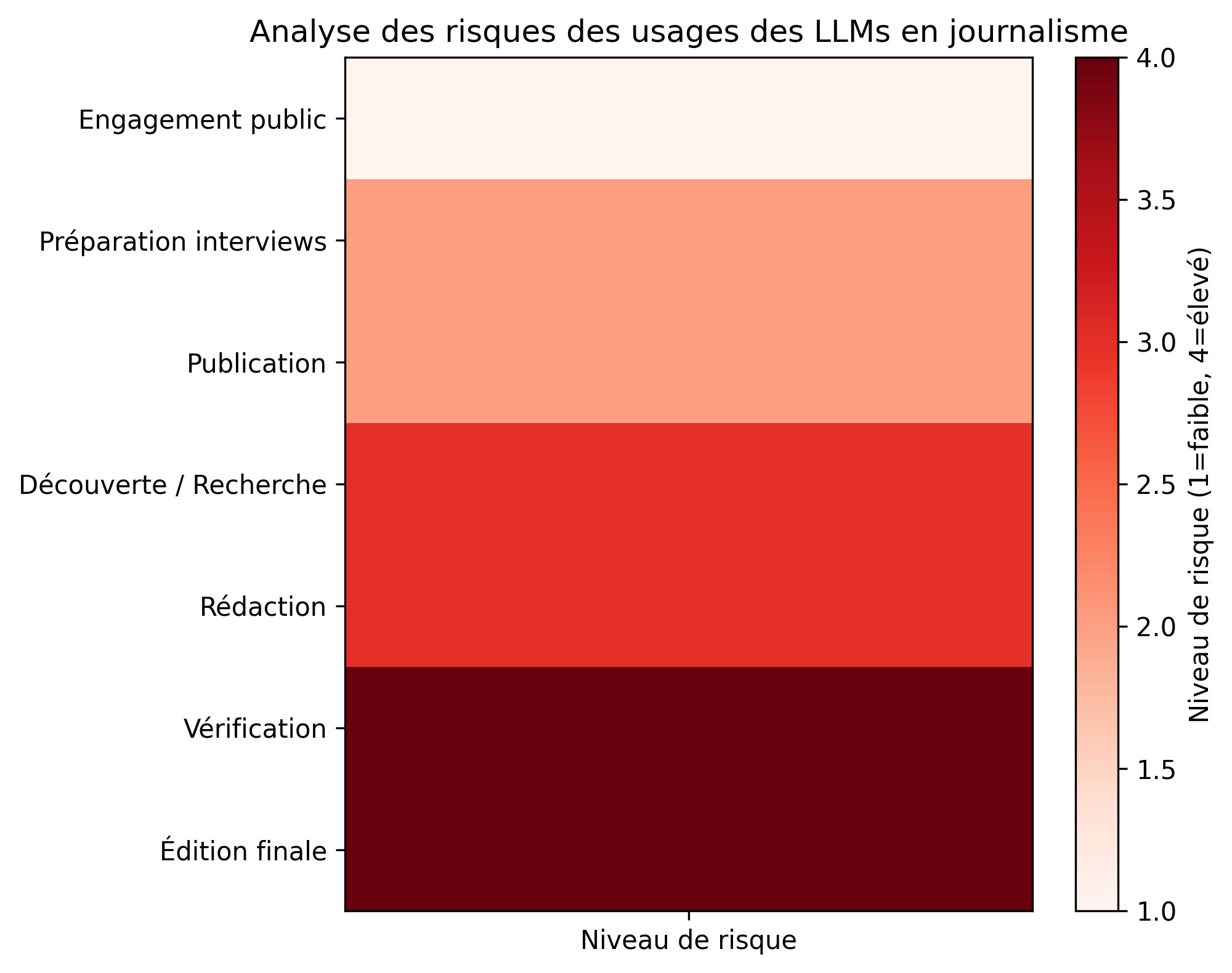 | Découverte d’histoires et recherche préliminaire | Modéré à élevé | – Vérification critique des informations – Croisement et diversification des sources – Considérer l’IA comme un point de départ |